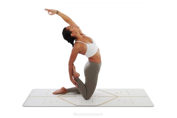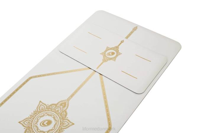 Liforme 'white magic' yogapuden, designet i samarbejde med den internationale yogalærer kino macgregor, har en cremet overflade trykt i metallisk guld med vores nye holdbare, giftfrie, miljøvenlige blæk. denne minimåtte pakker super lille for at give den komfort, stabilitet og greb, du har brug for, uanset hvor du går. tag liforme-magien med dig!